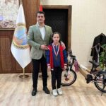 İlçe Milli Eğitim Müdürü İsmail Özden, Zafer ilkokulu idarecileri Serdar Taşoğlu ve Zehra Büşra Kızılbulut “Hayallerim, Ben ve Atatürk” konulu ulusal resim yarışmasında Türkiye birincisi olan Zafer İlkokulu öğrencisi Eylül Hayme Girgin ile birlikte Kaymakam Ekrem Güdek’i makamında ziyaret etti.