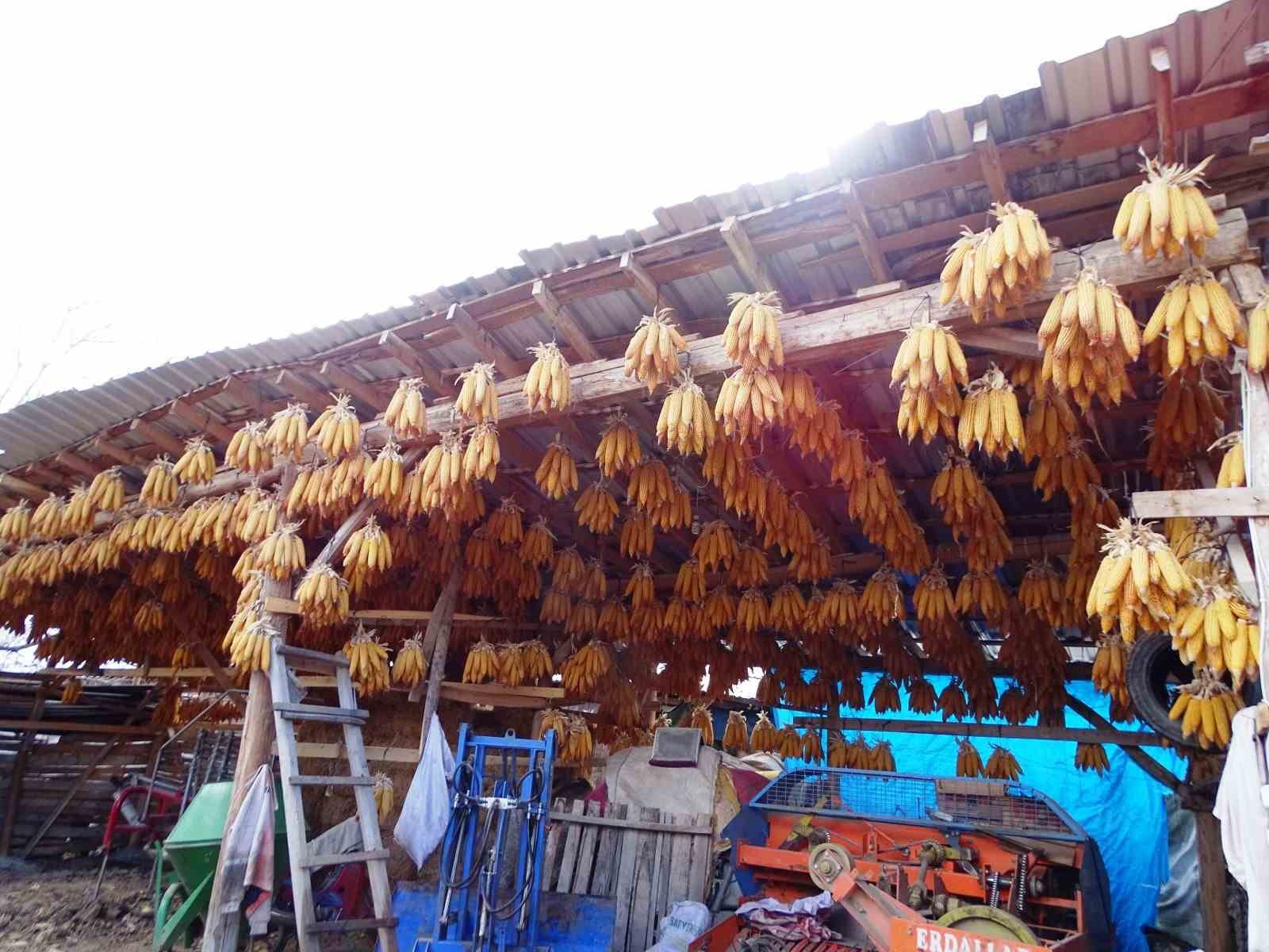 Hisarcıklı çiftçi mısırları tavana asarak muhafaza ediyor